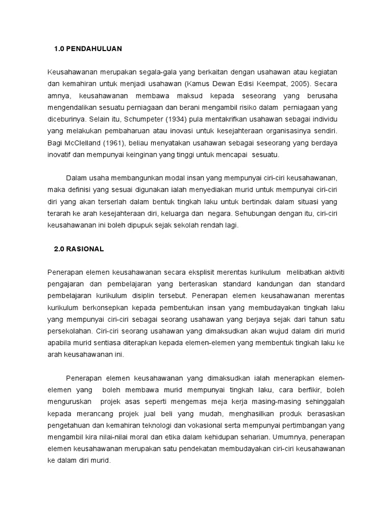 Contoh Kertas Kerja Kelab Usahawan Sekolah